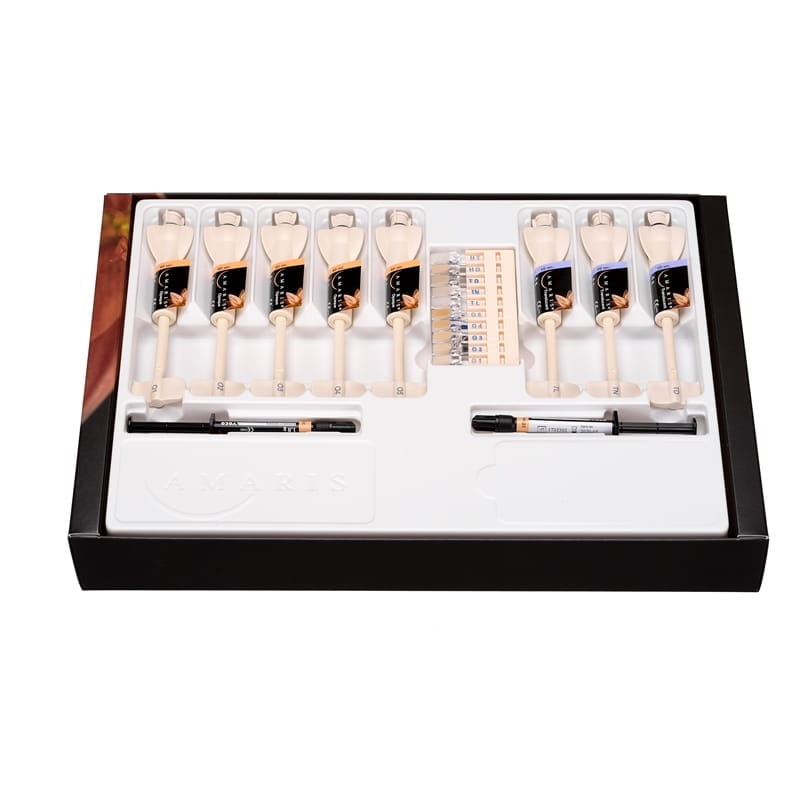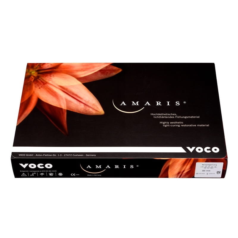 Opakowanie: zestaw strzykawek 8x4g (O1, O2, O3, O4, O5, TL, TN, TD), Amaris Flow strzykawki 2x1,8g (HT, HO) oraz kolornik z akcesoriami