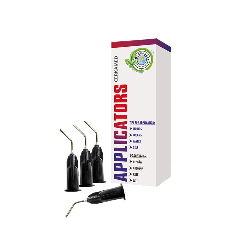 Aplikatory te stosuje się do aplikacji wielu rodzajów żeli, w tym do wszystkich rodzajów wytrawiaczy i preparatów endodontycznych. Odpowiednia średnica (0,9mm) pozwala na łatwą i bezpieczną pracę większością preparatów. Tępe zakończenie i odpowiedni kąt wygięcia pozwala na prawidłową aplikację preparatów.