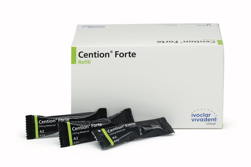 W kolorze zęba. Bioaktywny. Trwały. Dostępny od teraz: Cention Forte, nowa alternatywa dla glosjonomerów do stałych uzupełnień w ubytkach klasy I i II. Wypróbuj z pierwszej ręki materiał wypełniający w postaci proszku i płynu!