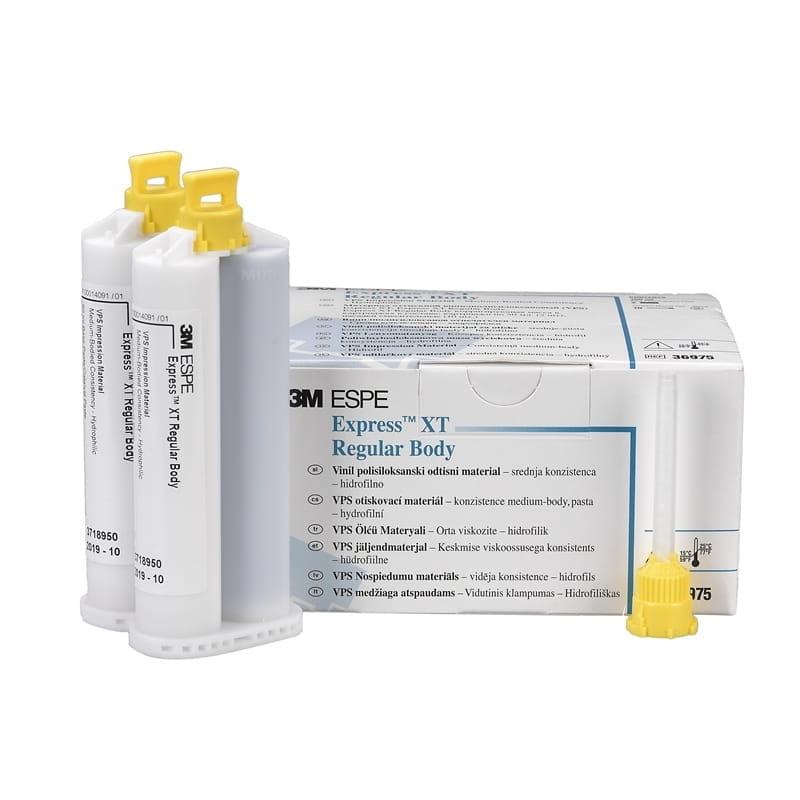 Express XT Regular Body to masa wyciskowa o średniej gęstości (turkusowa), średnioszybkowiążąca, przeznaczona do stosowania jako II warstwa przy precyzyjnych wyciskach dwuwarstwowych