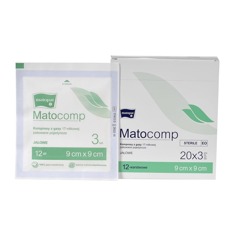 - jednorazowe Kompresy jałowe 9×9 cm Matocomp