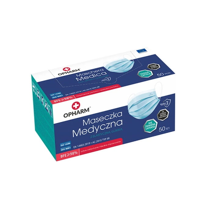 Maseczki medyczne polskie 50szt. Niebieskie