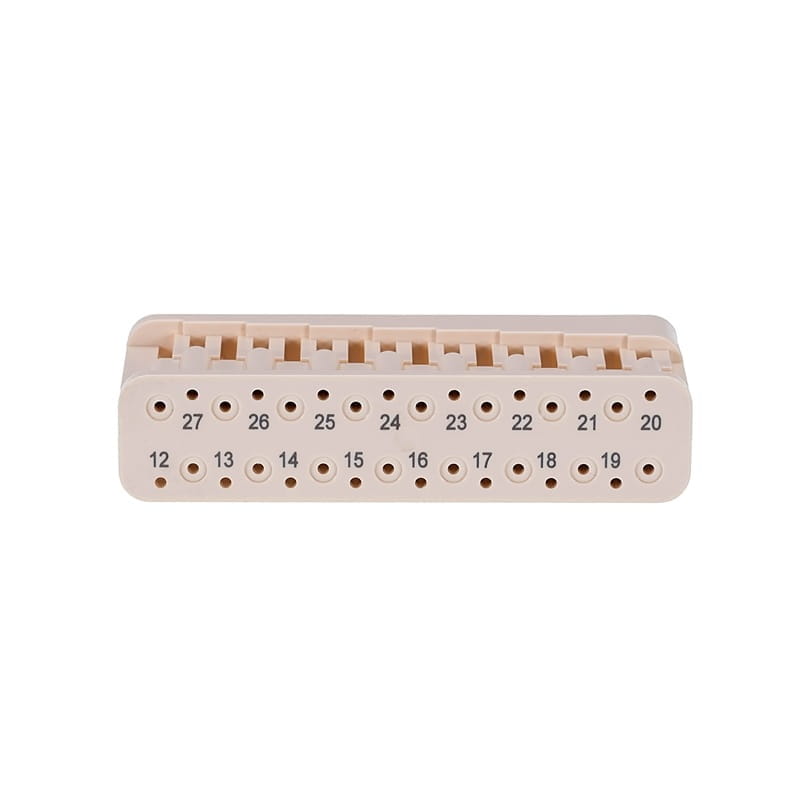 Przyrząd służący do precyzyjnego ustawiania ograniczników silikonowych na narzędziach kanałowych, ćwiekach, sączkach, pluggerach, etc., na określoną długość. Posiada również linijkę endodontyczną