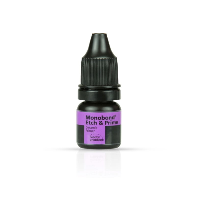 Monobond Etch & Prime to pierwszy na świecie jednoskładnikowy primer do ceramiki, który pozwala na trawienie i silanizację powierzchni ceramik szklanych w jednej, prostej procedurze. Materiał w tym samym czasie nie tylko trawi, ale również oczyszcza powierzchnie uzupełnienia z zanieczyszczeń białkowych np. śliny.