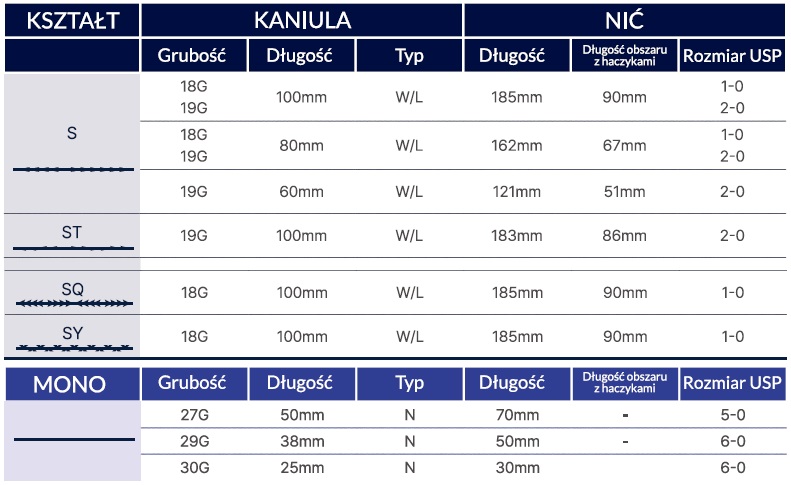 Nici mają większy rozmiar zębatki i są bardziej wytrzymałe na rozciąganie, co przekłada się na lepszy efekt zabiegu. Taka metoda produkcji sprawia, że haczyki są równomiernie wycięte na nici - to zapewnia lepszą przyczepność do tkanki.