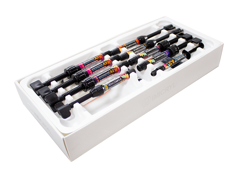 Nova Compo C to światłoutwardzalny, nieprzepuszczalny dla promieni rentgenowskich, nanohybrydowy kompozyt do wypełnień w odcinku przednim i bocznym.