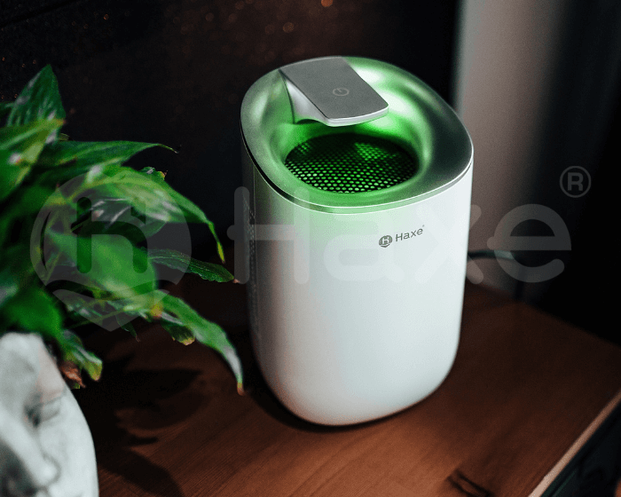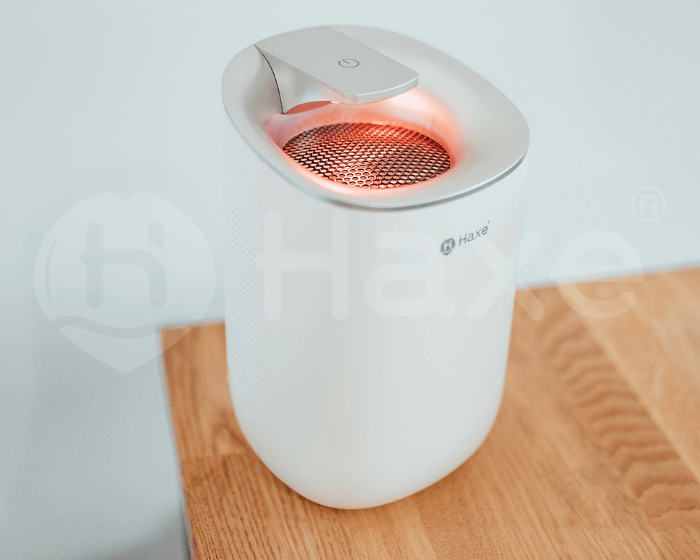 Osuszacz powietrza HX401 sprawdzi się w pomieszczeniach zamkniętych o powierzchni do 15m2. Ma ergonomiczny kształt, lekką wagę i nowoczesny wygląd. Poziom hałasu podczas pracy urządzenia znajduje się poniżej 35 dB. Produkt pozwala utrzymać chłód i komfort w pomieszczeniu. Gromadzi 300 ml wody na dobę, w zbiorniku o pojemności 600 ml. Kiedy zbiornik jest pełen, urządzenie wyłącza się automatycznie, a wskaźnik świeci się na pomarańczowo. Włącznik umieszczony jest na dotykowym panelu. Osuszacz posiada funkcję odszraniania. Kiedy wykryje szron lub lód na powierzchni płyty chłodzącej, automatycznie przestanie osuszać. Po rozmrożeniu powraca do osuszania powietrza.