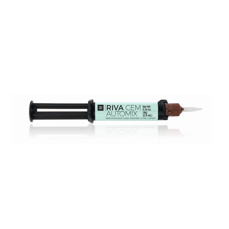 Riva Cem Automix to samopolimeryzujący, widoczny w RTG, uwalniający fluor, modyfikowany żywicą glasjonomerowy cement w postaci pasta/pasta. Materiał ten jest przeznaczony do docelowego cementowania uzupełnień metalowych i ceramicznych. Końcówka mieszająca jest wygodniejsza niż tradycyjne systemy cementów do mieszania ręcznego.