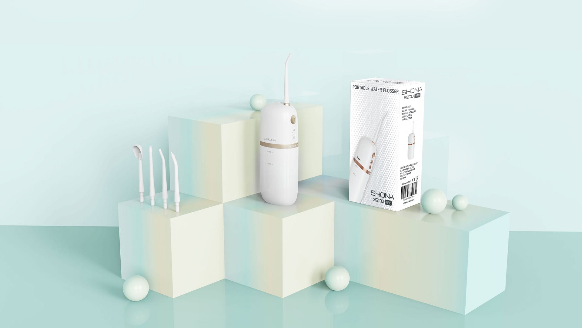 Irygator Shona S200 PRO jest mały i lekki, dzięki czemu można go łatwo zabrać ze sobą, gdziekolwiek będziesz. Niezależnie od tego, czy jesteś w podróży, czy po prostu potrzebujesz wyczyścić zęby w biegu, to urządzenie jest doskonałym rozwiązaniem.