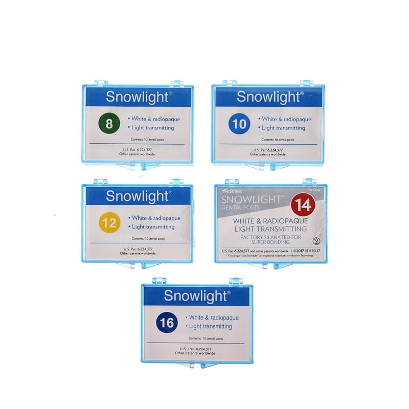 Opatentowane, estetyczne wkłady z włókien szklanych wzmocnionych kompozytem i cytkonem. Zbudowane są w 60% jednokierunkowo podłużnie ułożonych włókien szklanych wzbogaconych cyrkonem zatopionych w żywicy epoksydowej. Snowlight powstały w wyniku połączenia badań nad fizjologią zębów, wykorzystania w stomatologii najnowszych osiągnięć techniki. Snowlight są silanizowane podczas procesu produkcji, co zapewnia idealną adhezję do kompozytów, systemów wiążących i cementów. Snowlight imitują fizjologię zęba i pozwalają na maksymalne oszczędzenie tkanek zęba. Sprawdzają się idealnie w nowoczesnej, nieinwazyjnej stomatologii. Ich kształt naśladuje anatomię kanału korzeniowego. Różne średnice, 1,0, 1,2, 1,4 i 1,6 mm, umożliwiają szeroki zakres zastosowania, nawet w bardzo wąskich kanałach, np. w dolnych siekaczach, w kanałach przednich dolnych trzonowców i kanałach policzkowych górnych trzonowców.
