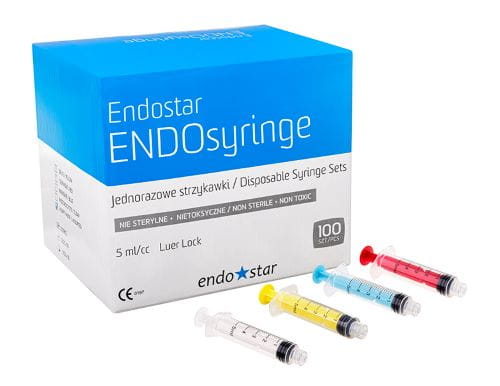 Małe, kolorowe strzykawki do irygacji - 5 ml.