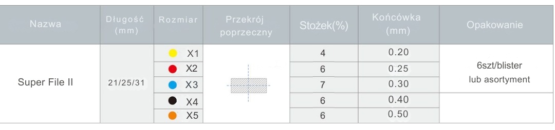 Opakowanie: listek 6 pilników.