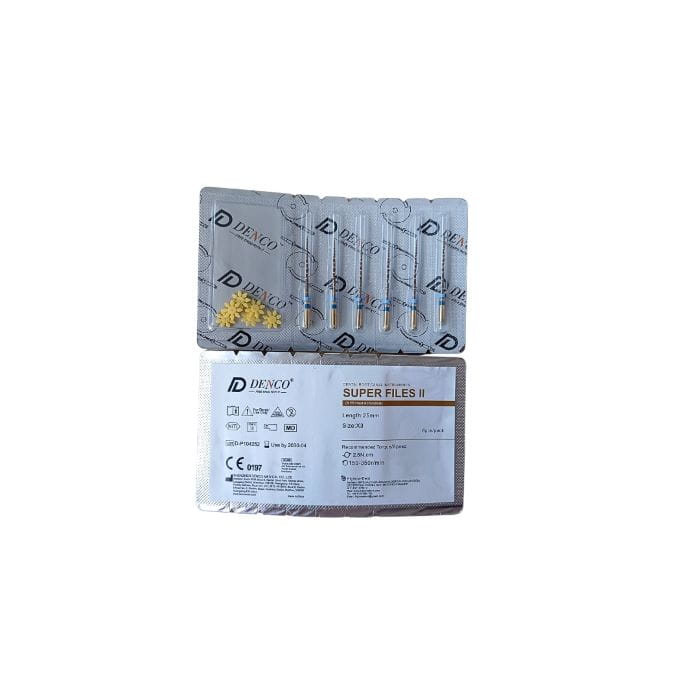 Optymalna konstrukcja ostrza oraz precyzyjnie dobrana stożkowatość zapewniają efektywne usuwanie zębiny, minimalizując ryzyko złamania narzędzia. Pilniki Denco Super Files II charakteryzują się doskonałą elastycznością, co umożliwia ich zastosowanie w zakrzywionych kanałach.