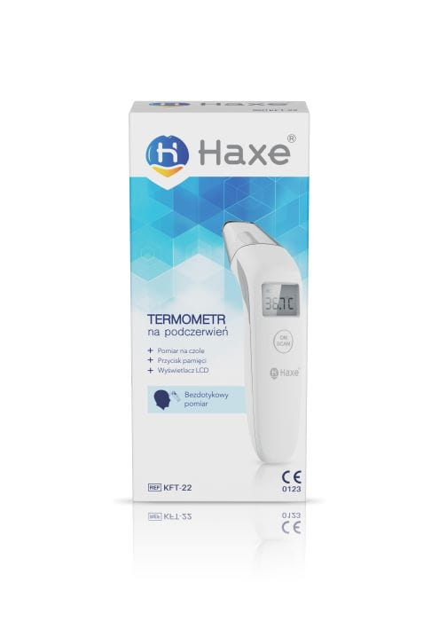 Termometr działa na podczerwień, bez kontaktu z ciałem. Można zmierzyć nim szybko i precyzyjnie temperaturę dziecka lub osoby dorosłej na czole. Mierzy temperaturę w sposób higieniczny. Zapamiętuje ostatnie 6 pomiarów, które można odtworzyć poprzez naciśnięcie przycisku pamięci MEM. Wyłącza się automatycznie po 15 sekundach bezczynności. Termometr posiada wyświetlacz LCD, na którym wyraźnie widać jaka jest temperatura.
