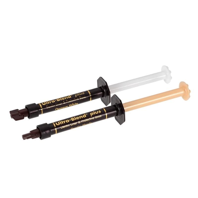 Zawiera wodorotlenek wapnia oraz hydroksyapatyty wapnia rozpuszczone w dimetakrylanie uretanu. UltraBlend plus jest dostępny w dwóch kolorach: zębinowym i nieprzeziernym białym. Wytrzymałość i nierozpuszczalność w wodzie (nie wypłukuje się) czyni UltraBlend plus materiałem z wyboru do stosowania jako tradycyjny podkład pod kompozyty, a także amalgamaty, złoto itp. Po użyciu preparatu na bazie 2% chlorheksydyny, np. Consepsis, jest zalecany w przypadku pokrycia pośredniego i bezpośredniego (zalecane końcówki: Black Micro Tips – metalowe kaniule z czarnym kołnierzem lub Black Mini Tips – plastikowe czarne).