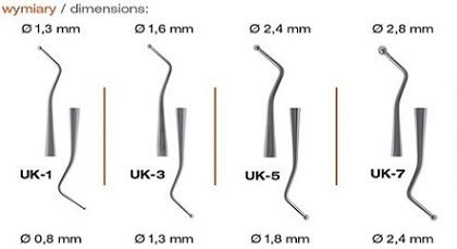 Upychadło stomatologiczne, zakończone z obu stron różnej wielkości kulkami/stożkami/walcami, służy do opracowywania materiału wypełniającego ubytek.
