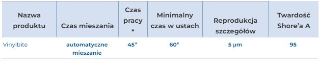 Bms Dental Vinylbite materiał winylowo-polisiloksanowy o średniej konsystencji przeznaczony do rejestracji zgryzu. Bardzo wysoka twardość końcowa przy krótkim czasie wiązania wewnątrzustnego. Brak uwalniania substancji toksycznych w trakcje i po utwardzaniu.