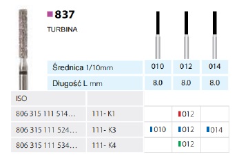 Wiertła diamentowe 837 długi walec na standardowym trzonku