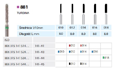 Wiertła diamentowe 881 okrągły walec (5 sztuk) rozmiar 10-18