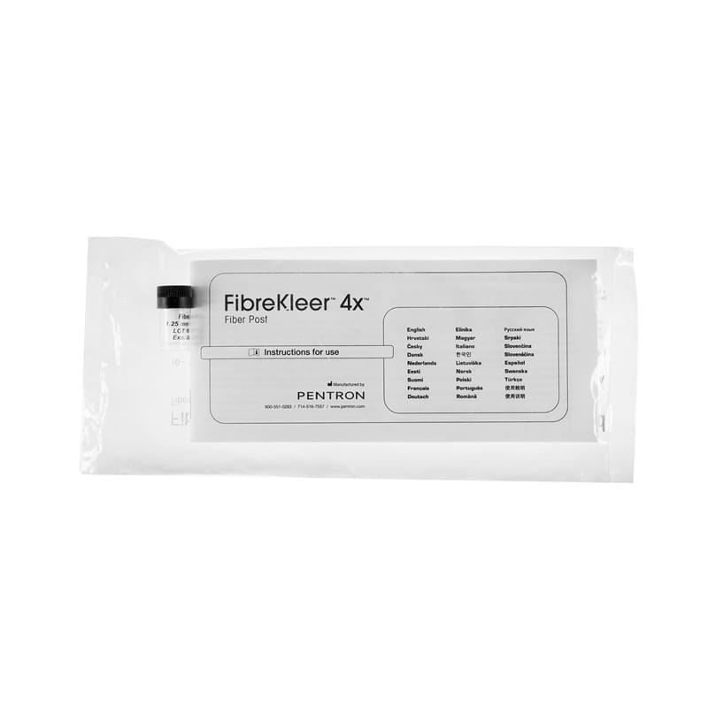 Wkłady z włókna szklanego FibreKleer 4x charakteryzują się nadzwyczajną widocznością na zdjęciach rtg, do 400% Al, która zapewnia ich natychmiastową identyfikację podczas osadzania i w trakcie wizyt kontrolnych. Przezierne włókna szklane, ułożone w postaci wiązek w opatentowanej, przezroczystej matrycy kompozytowej, zapewniają nadzwyczajną wytrzymałość na zginanie i pomagają uzyskać naturalną estetykę, do której dąży się w przypadku pełnoceramicznych uzupełnień protetycznych. Dzięki modułowi sprężystości, który jest zbliżony do zębiny, wkłady uginają się razem z zębem i przenoszą obciążenia równomiernie wzdłuż pozostałej struktury korzenia, Wpływa to na radykalne zmniejszenie ryzyka złamania korzenia, w porównaniu z wkładami metalowymi. Udoskonalone opakowanie zestawu zawiera metalową podstawkę, która pozwala na bezpieczne przechowywanie wkładów i wierteł oraz ułatwia ich użycie. Aby zapewnić szybką identyfikację, wszystkie wkłady z włókna szklanego FibreKleer 4x oraz odpowiadające im wiertła oznaczone są kodem kolorystycznym, a trzy kształty – równoległe z retencyjną główką (Parallel), stożkowate (Tapered) oraz w kształcie pnia palmy (Original) – gwarantują klinicystom wybór takiego rodzaju wkładu, który jest najlepszy dla danej sytuacji klinicznej.